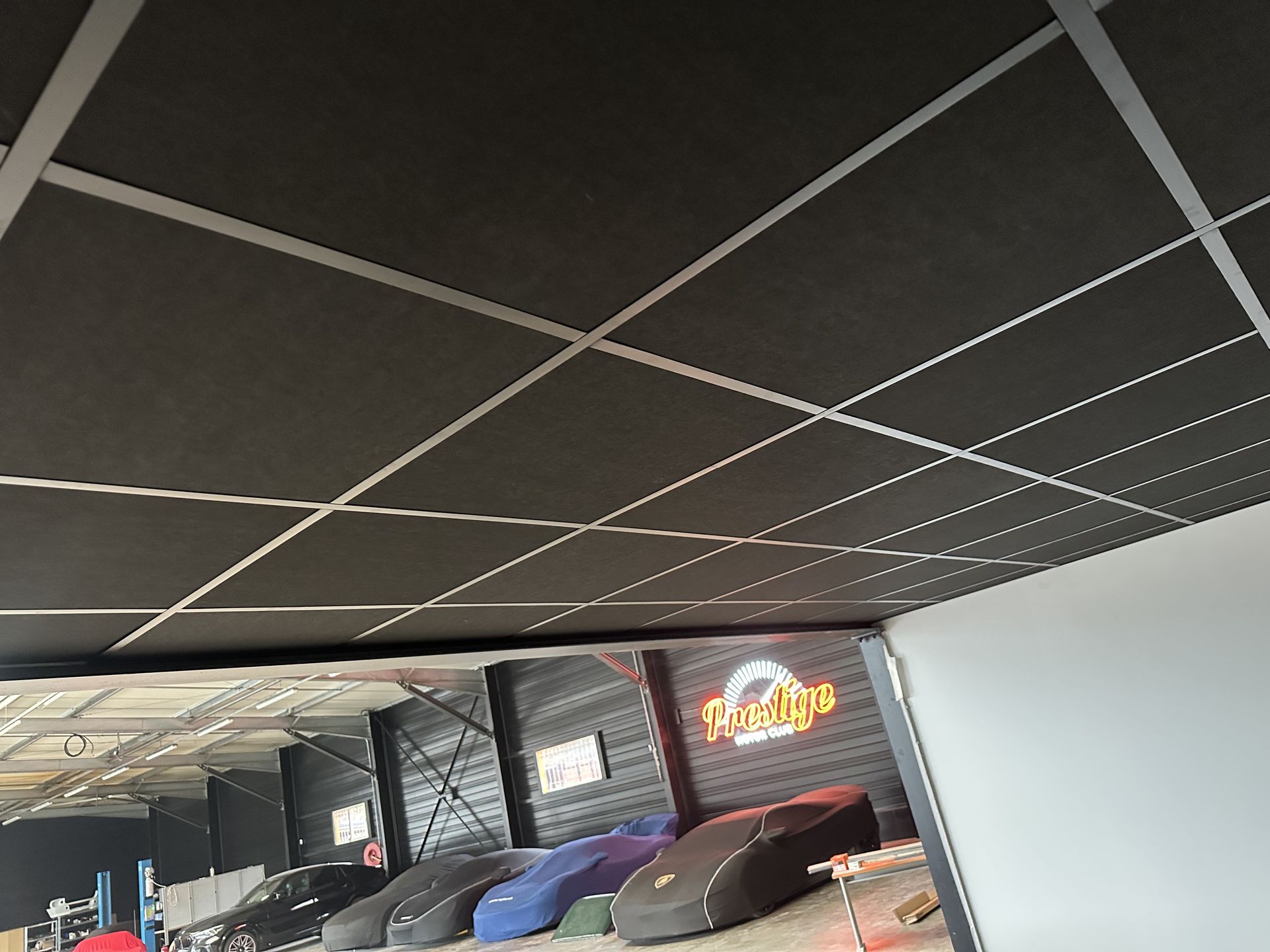 Nous réalisons également des plafonds dalles, une solution à la fois esthétique et fonctionnelle, particulièrement adaptée aux bureaux, commerces et espaces professionnels. Ce type de plafond permet une intégration facile des systèmes d'éclairage et de ventilation, tout en offrant de bonnes performances acoustiques.